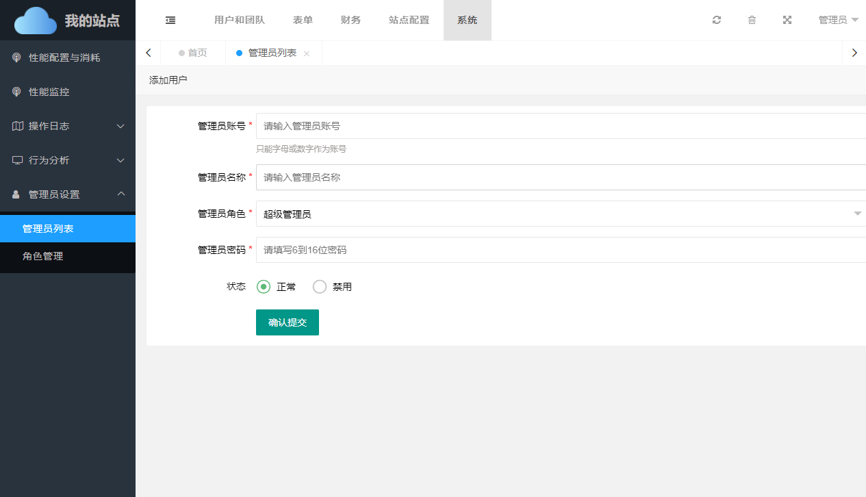 添加管理员时需要选择对应的管理员角色,如未设置过管理员角色,可在左侧角色管理中进行设置。