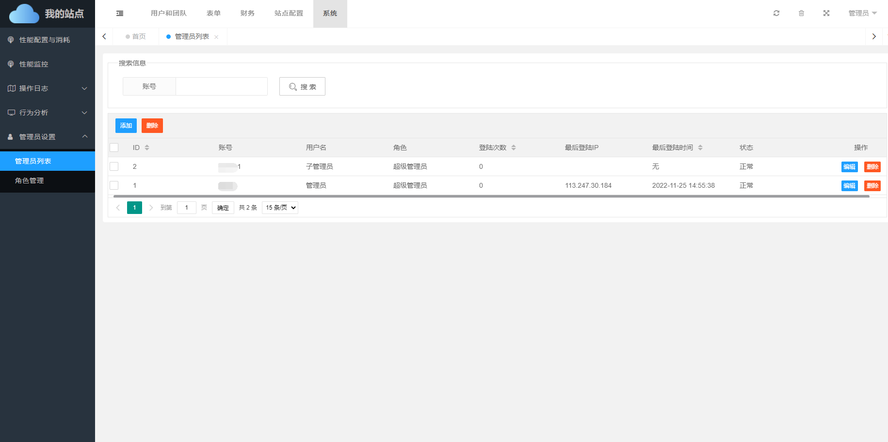 已存在的管理员可以进行编辑,编辑时,所有信息均可重新设置。