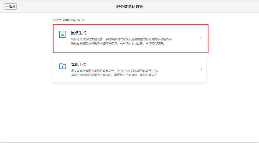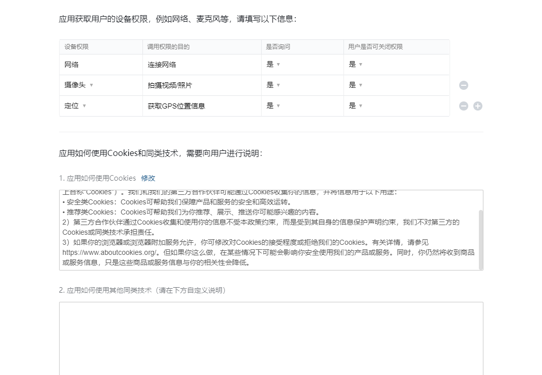 【应用开发】->【网页应用】,进入新添加的应用,找到服务商隐私政策,点击上传