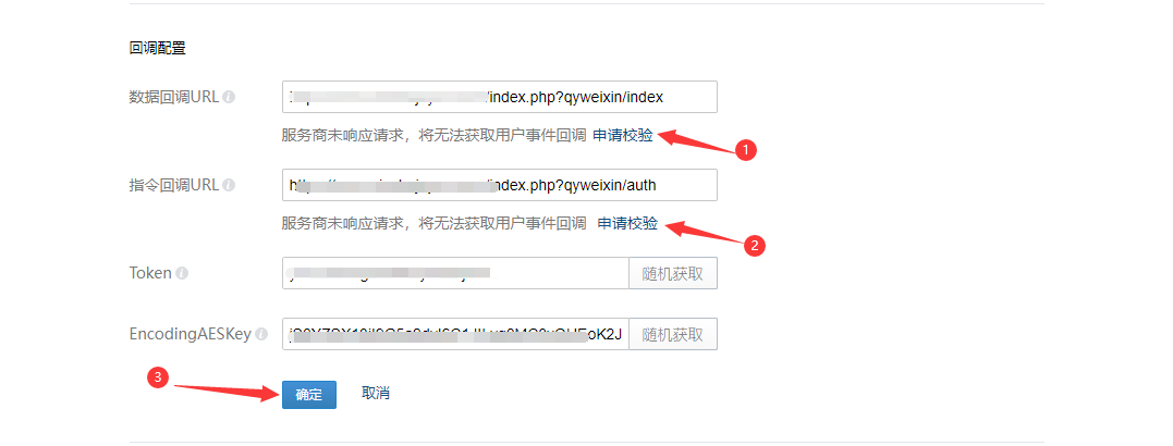 | 数据回调URL: | https://abc.xyz.com/index.php?qyweixin/index |