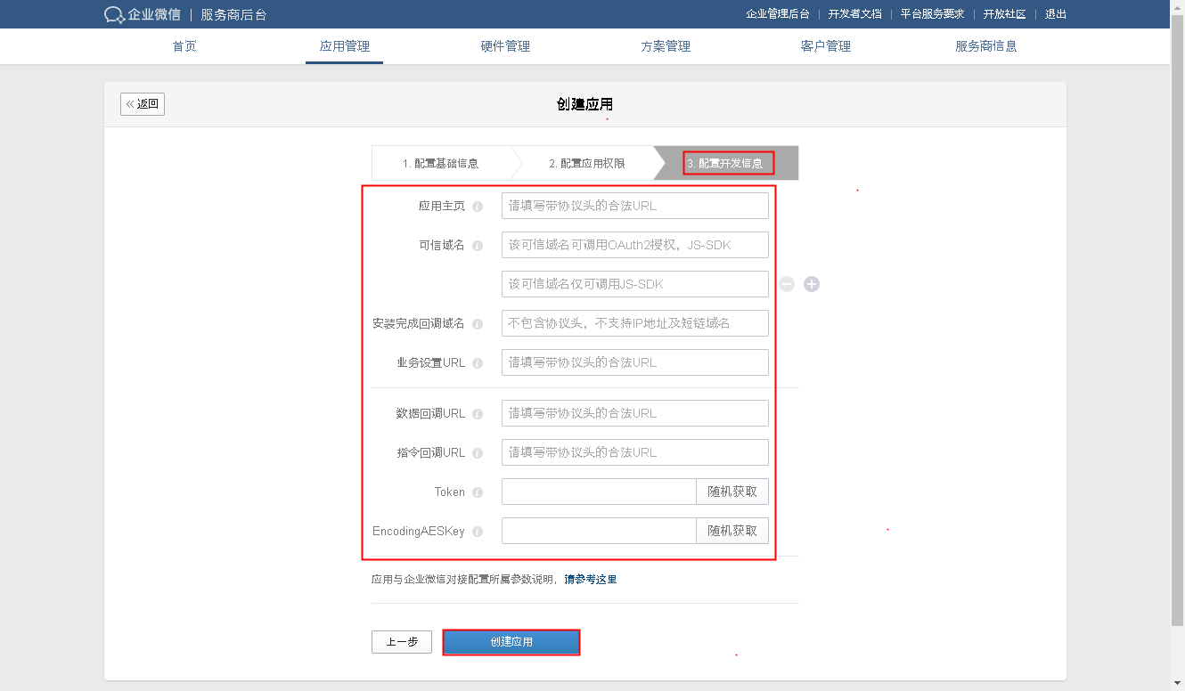 依次进入【第三方管理】->【企业微信应用配置】->切换到【企业微信第三方配置】