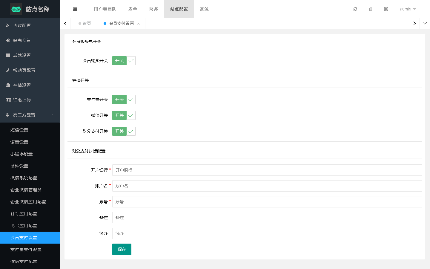会员支付设置