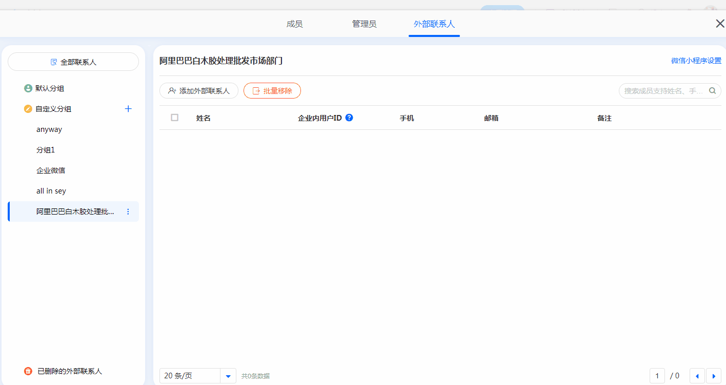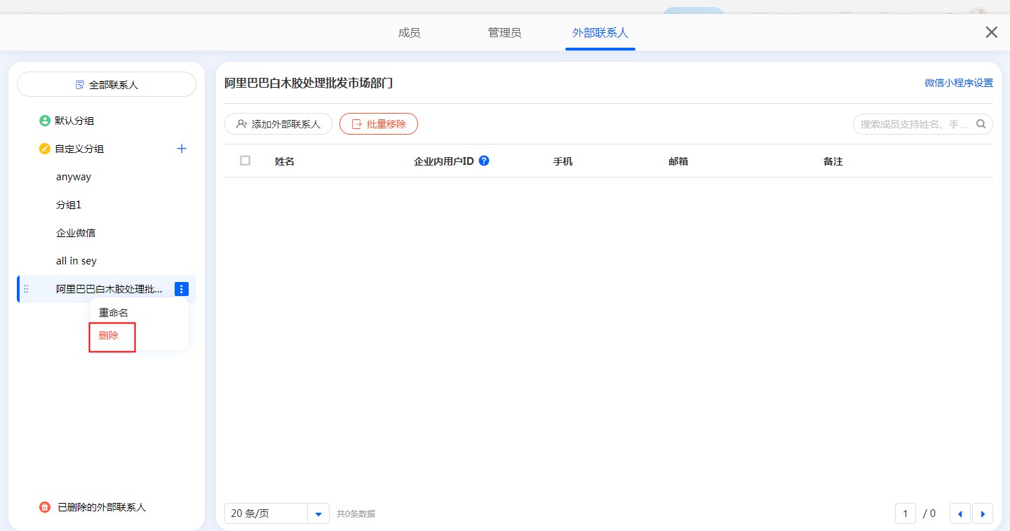 当自定义分组内无外部联系人时,可以删除该分组。