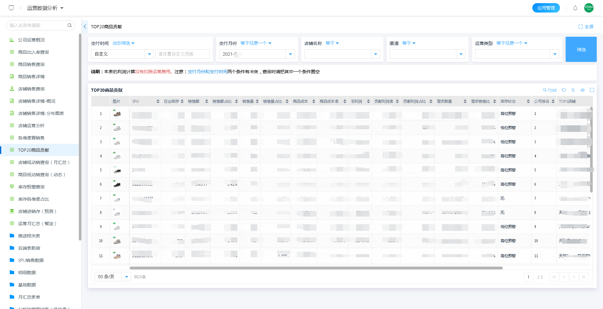 通过使用数转平台平台强大的计算能力,对商品销售数据的分析,在千万级的基础数据中计算出TOP20商品贡献的商品,有助于企业在后续的运营、推广等环节针对性的做出正确的决策。
