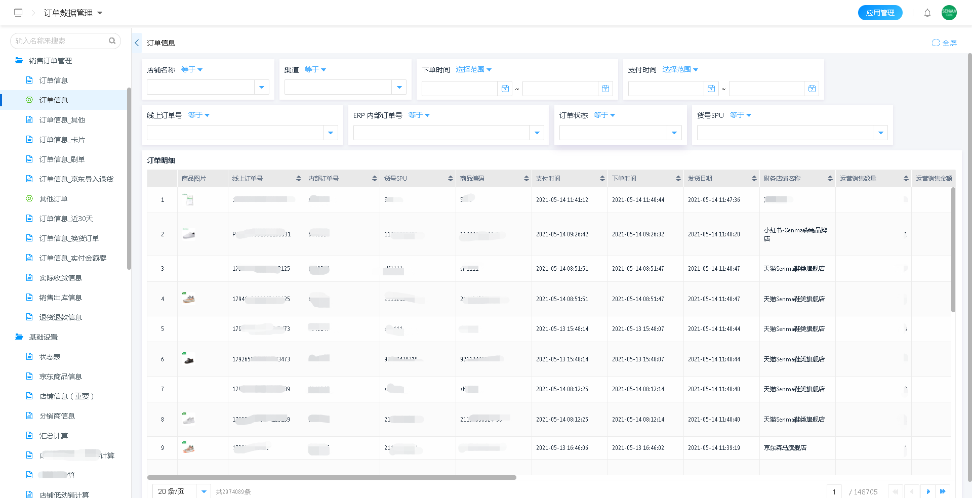 通过对接数转平台平台和聚水潭,在聚水潭上积累的海量订单数据及仓储数据接入数转平台平台后,即可在数转平台平台里实现数据的查看、管理。