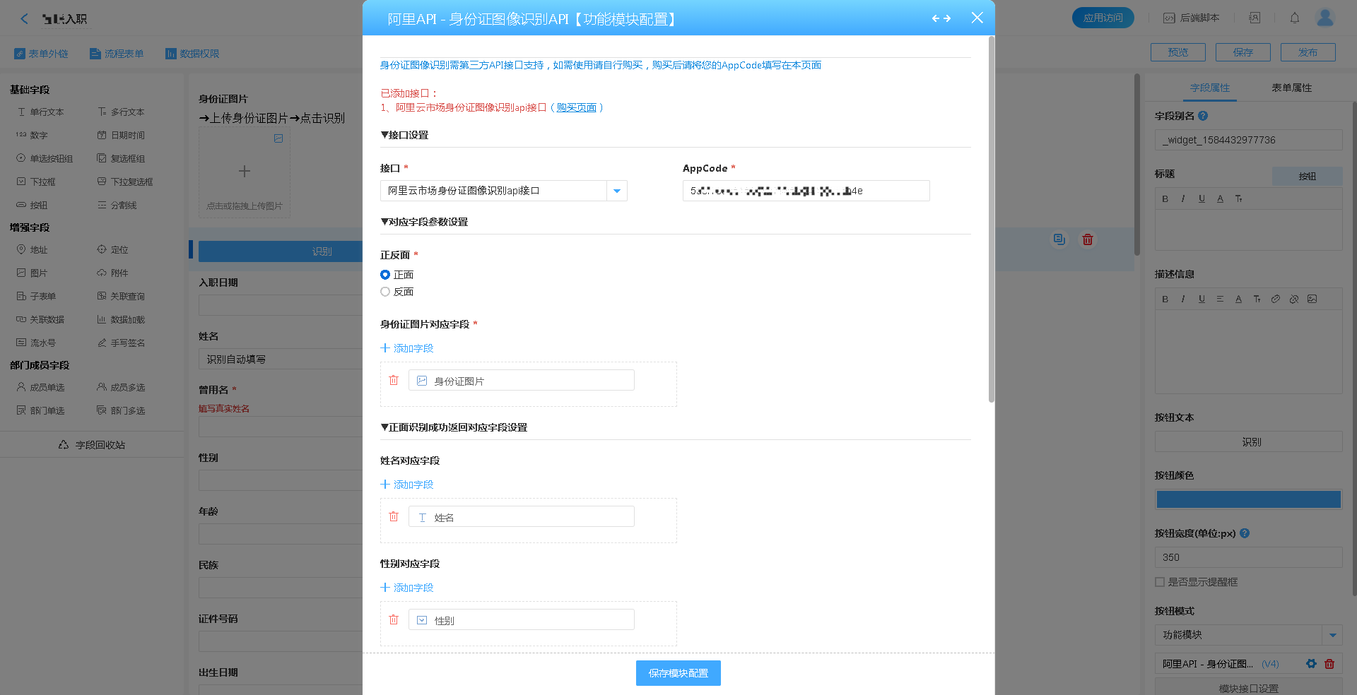 1、利用数转平台对接外部API的能力,全自动识别入职员工的身份信息,减少繁琐的个人信息输入步骤,大大提升了人事办事效率。