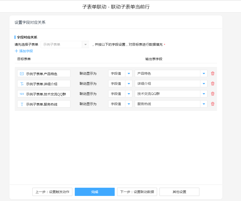 点击此链接【数据助手 - 子表单单行联动】可以跳转至数转平台官网 >>> 解决方案 >>> 数据助手功能示例进行实际操作效果演。