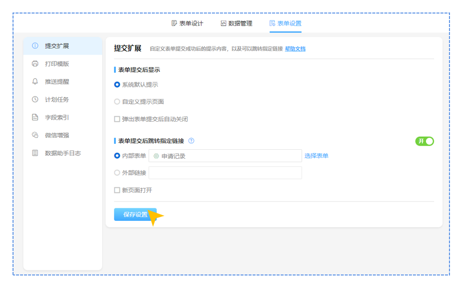 如此方便的应用设置在数转平台实现起来也十分简单,下面我们借助实际业务场景来看看是如何实现的吧!