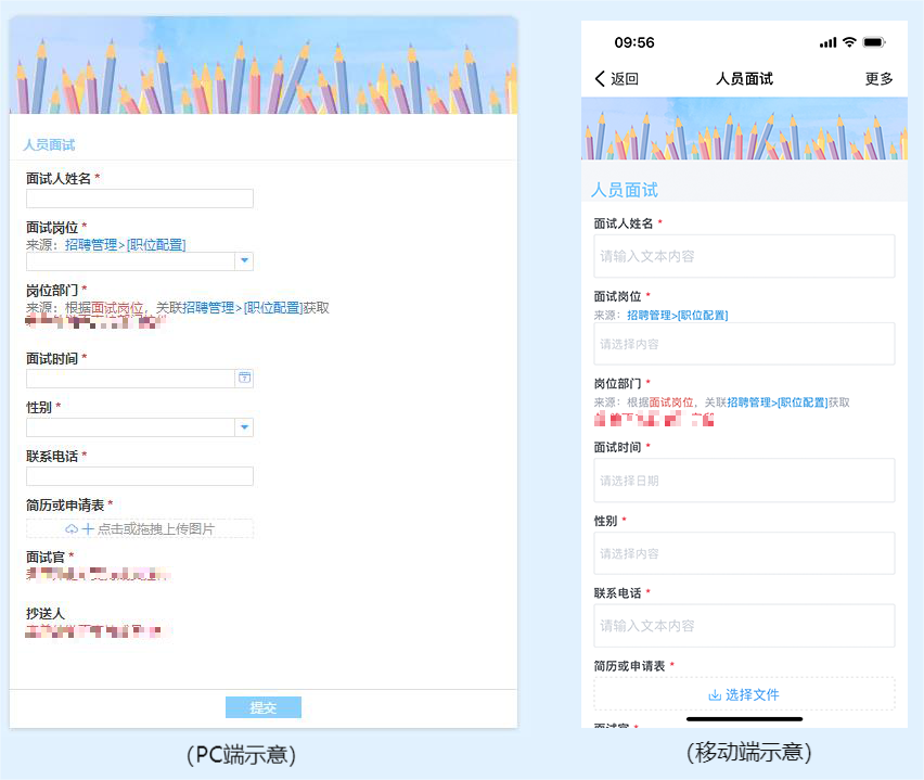 *如人员面试时分享链接给面试者申请信息表单