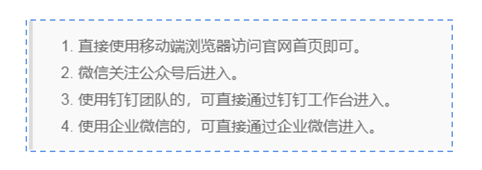数转平台移动端的使用方法有四种,通过微信公众号、钉钉、企业微信登录的,可直接进入已绑定的账号。