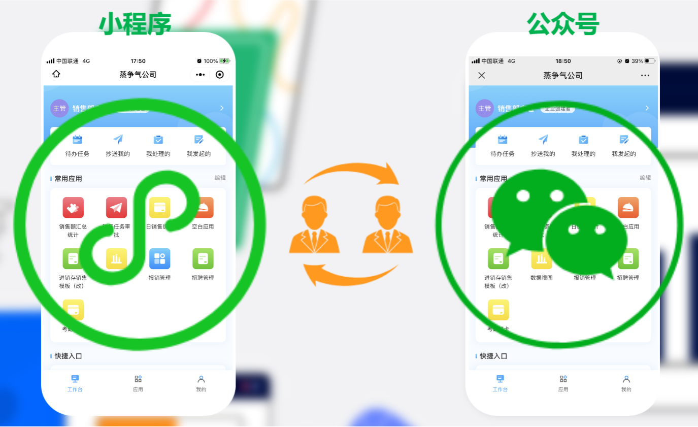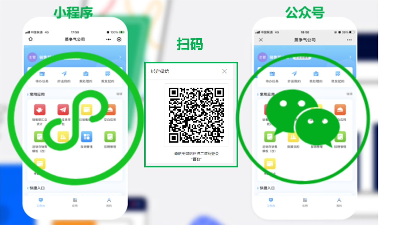 随着业务的复杂性增加,用户对数转平台的使用深度也在不断增强,除了在PC端的使用外,也可以通过与微信绑定的方式在微信公众号与微信小程序中同步使用,进行数转平台业务协作。