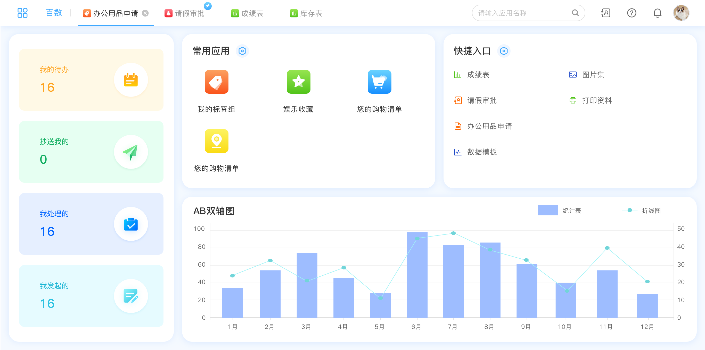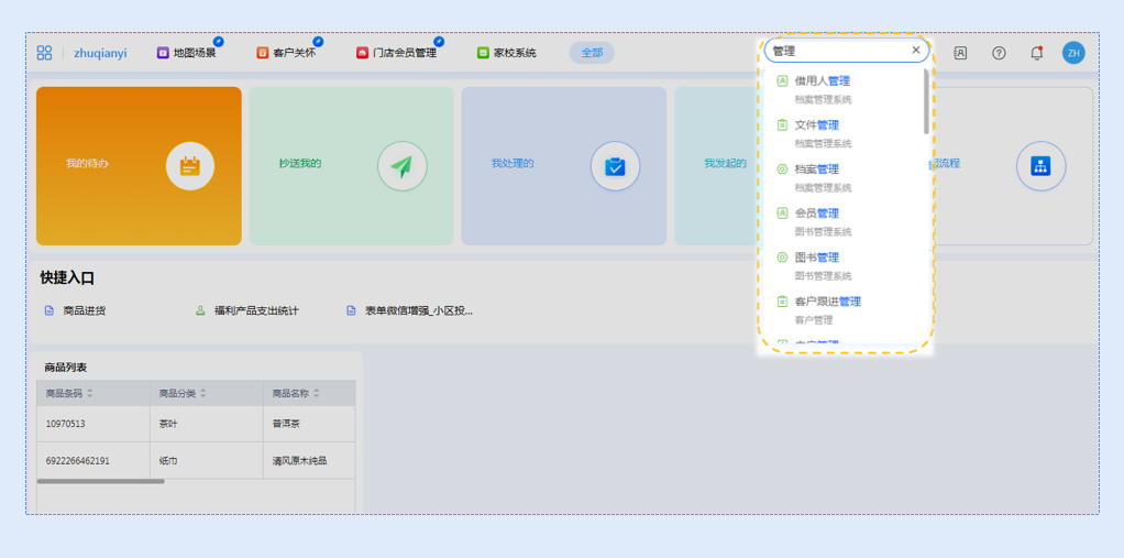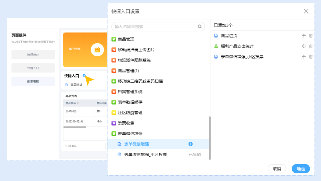 可以将自己常用的表单、报表放置在快捷入口,方便随时查看调用。