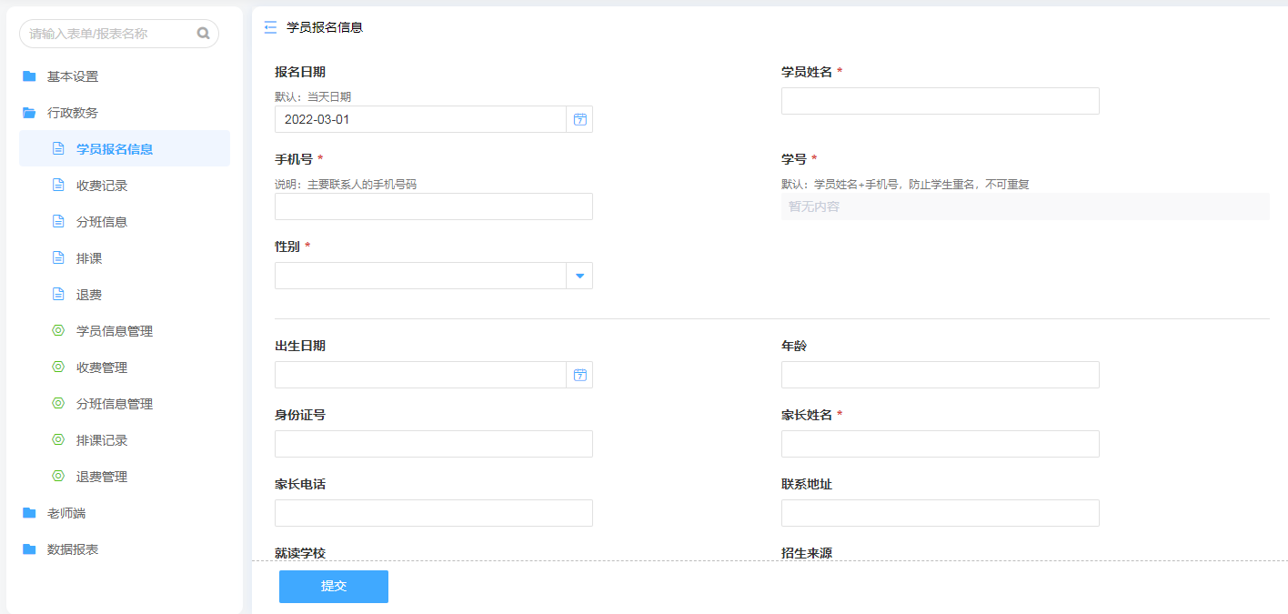 正式报名的学员信息通过在线表单录入后,方便之后进行归档以及调用。