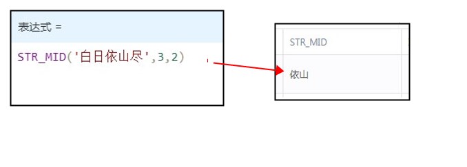 - 当start_num和num_chars为非正整数时,两个公式计算结果不一致,如MID(’白日依山尽‘,-1,1),结果为 山 ,STR_MID(’白日依山尽‘,-1,1),结果为 尽。建议避免参数为非正整数的情况。
