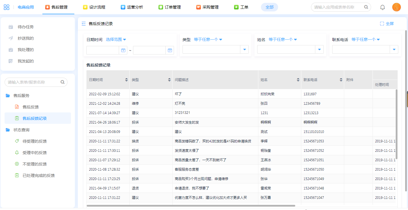 实现售后反馈及时收集,减少售后服务管理漏洞,随时了解售后的处理进度,便于日常工作跟进以及定期复盘。