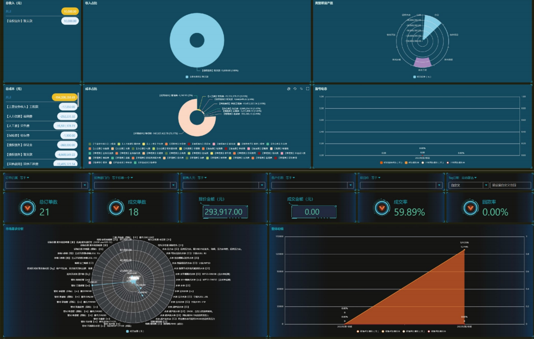 3.数转平台的报表分析功能,可对各类型业务进行数据管理、统计、分析,快速生成多维度可视化数据分析,同时支持自定义报表外观,实现报表展示多样化。