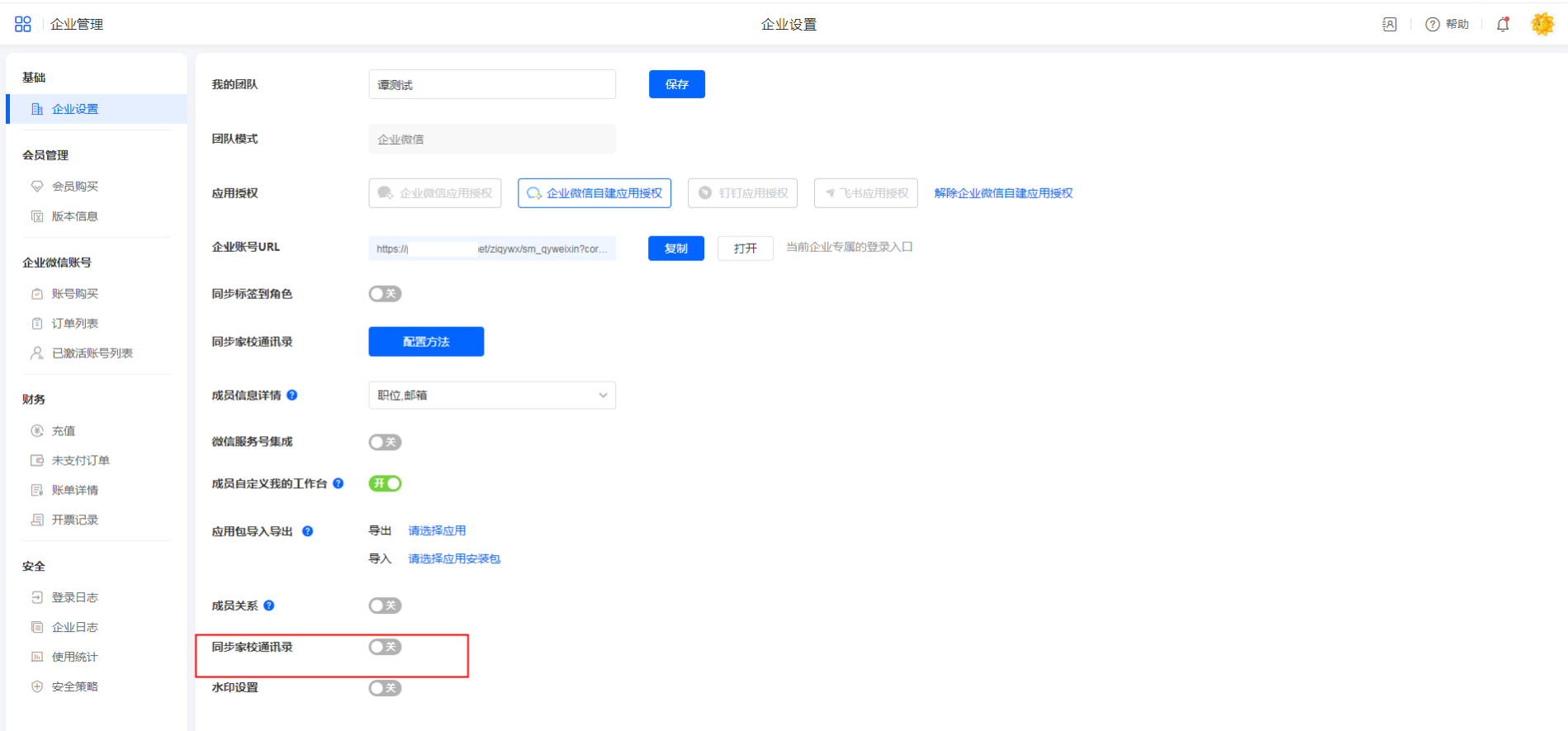 钉钉/企业微信团队增加【同步家校通讯录】开关,需开启此开关才会同步家校通讯录,否则只同步基础部门。