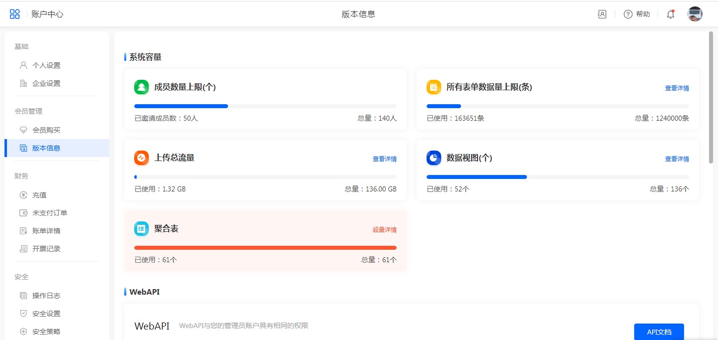 点击容量的[查看详情],可以查看对应功能权益的使用详情。