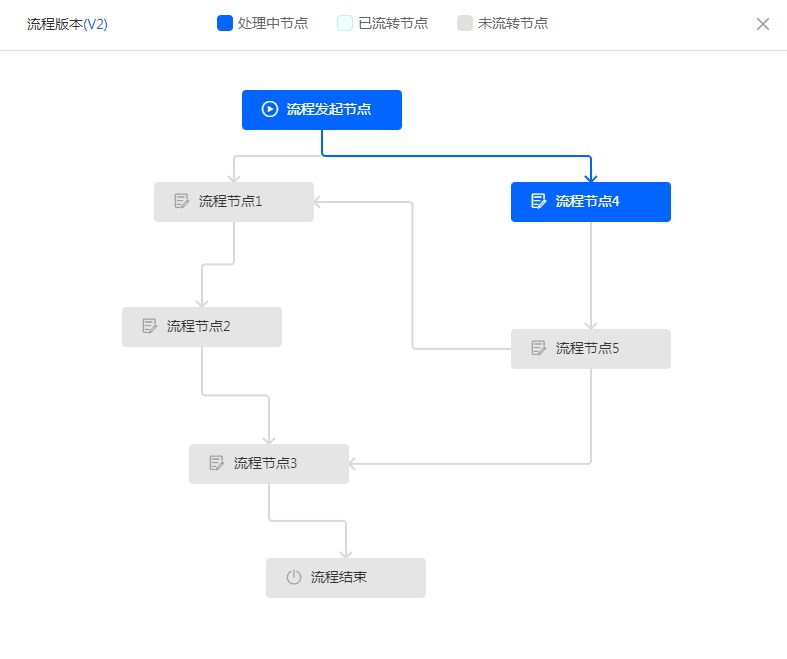 示例:流程发起节点发起流程,流转到流程节点1和流程节点4。