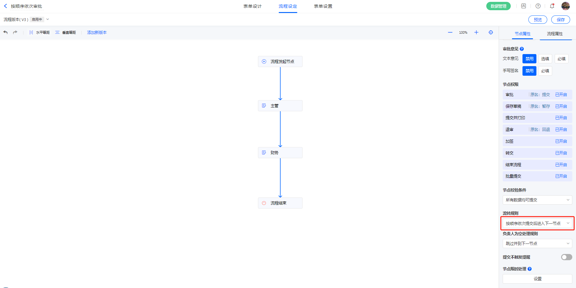 如果需要所有负责人提交后进入下一节点,则当所有在此节点的负责人都对此流程节点做了操作,提交或结束流程后,该节点才会继续向下执行,反之亦然。