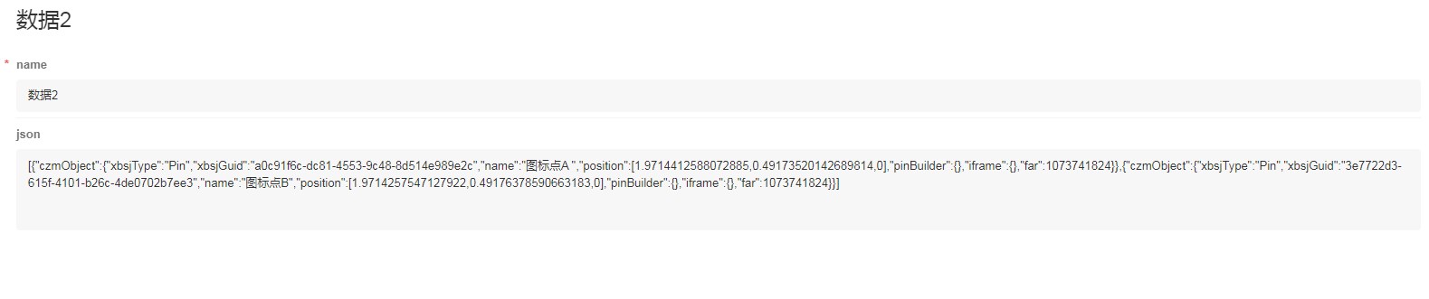 表单名称自定义,表单中创建2个字段别名是(name、json)。