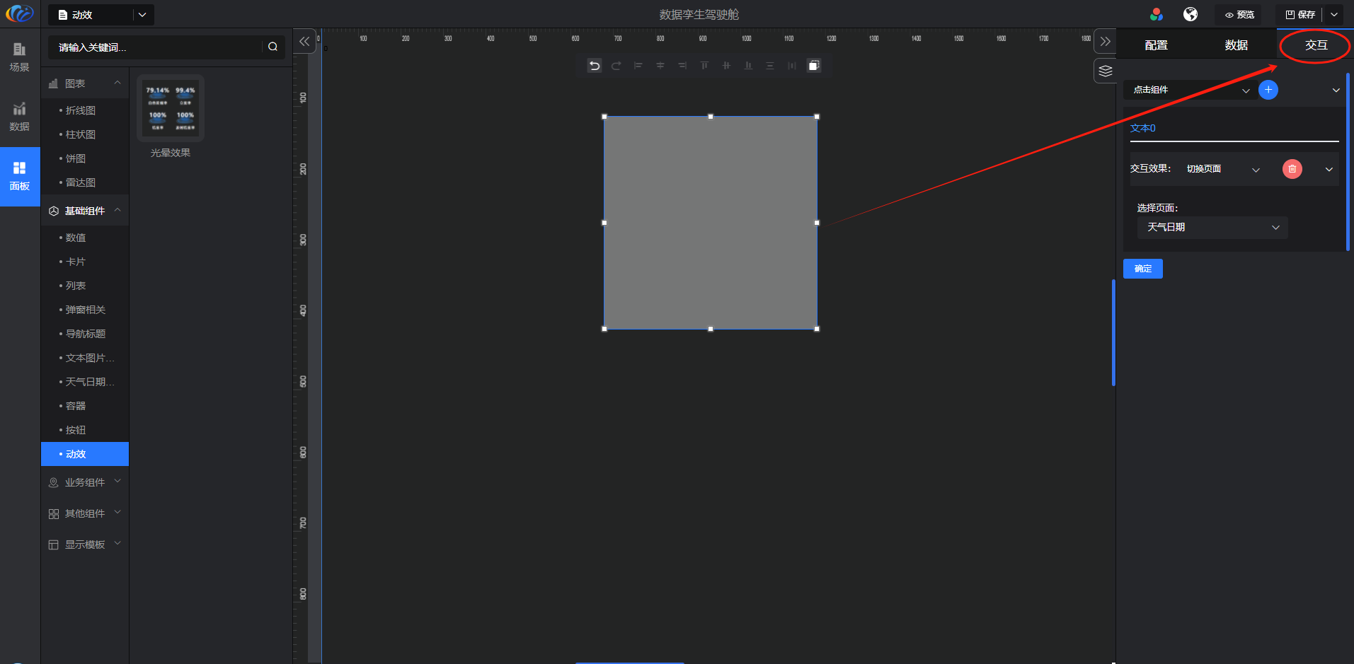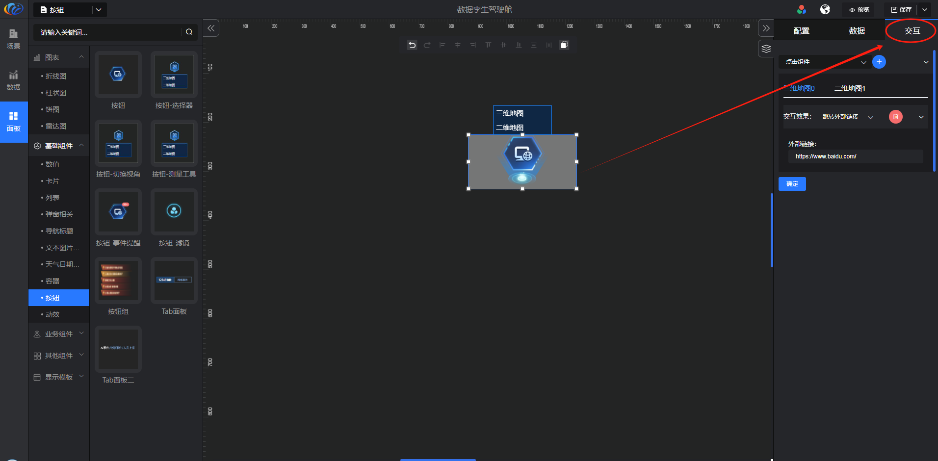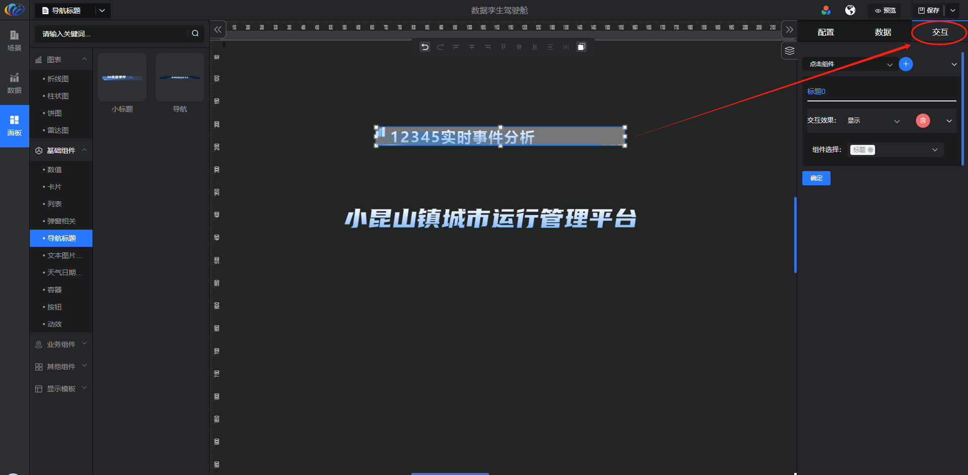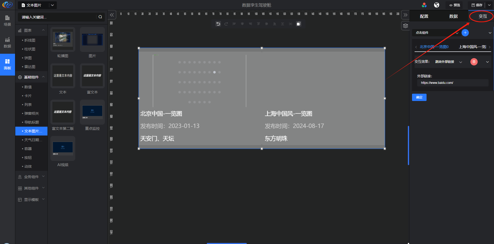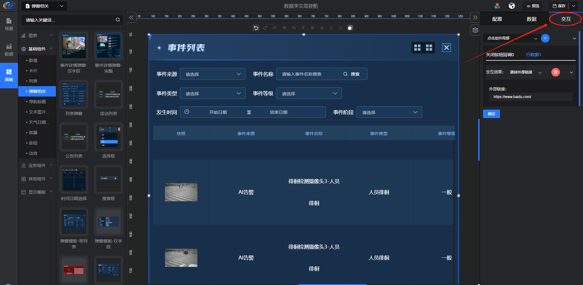 交互:对组件显示的内容点击 配置交互效果。