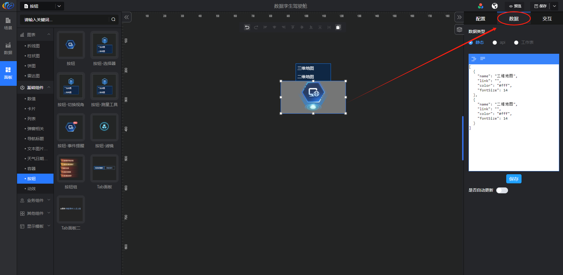 按钮、按钮-切换视角、按钮-测量工具、按钮-滤镜不支持数据配置