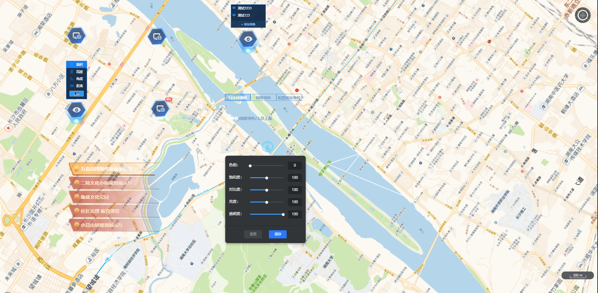 注按钮切换视角、测量工具组件需选择场景地图配合使用