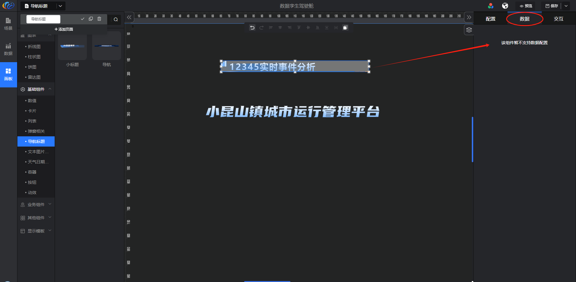 数据源:导航标题组件不支持数据配置。