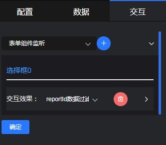 注意:选择框的数据源为筛选条件,折线图的数据源为图表,在数据源报表中,筛选条件就是筛选此图表的,这样才能达到reportId数据过滤的交互效果。
