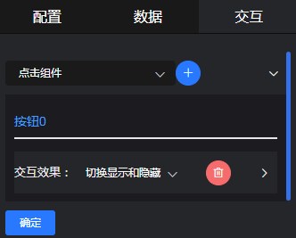 点击组件产生交互效果,如按钮组件,点击按钮显示相关组件等。