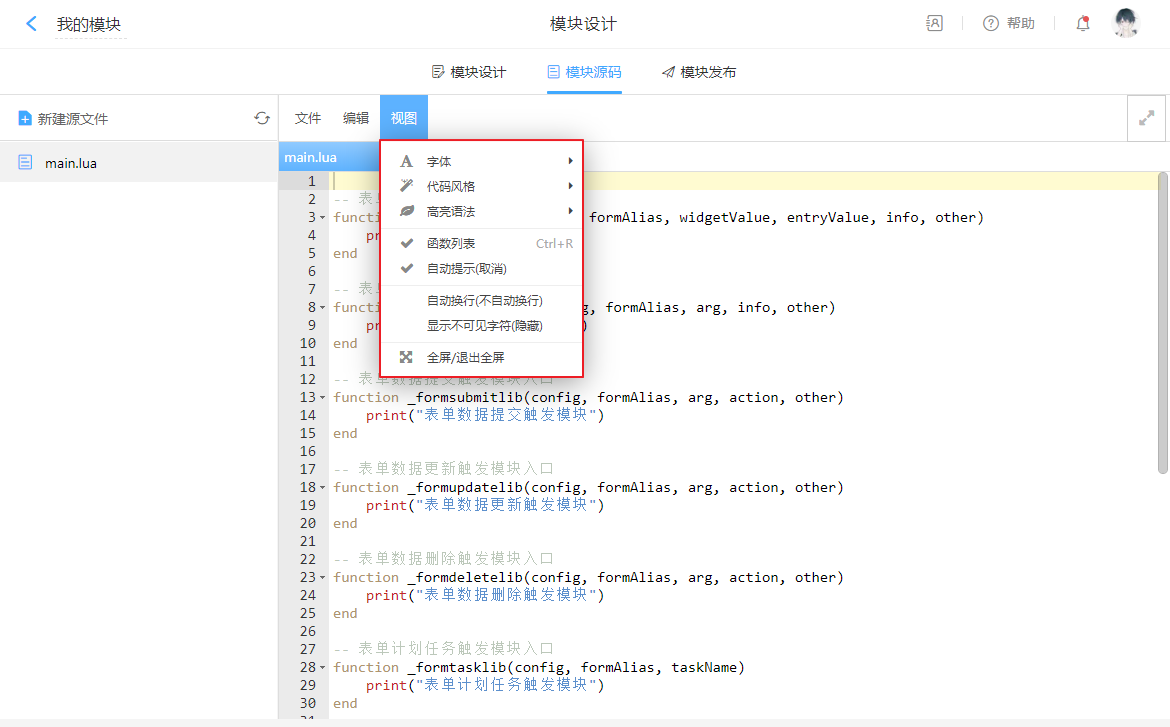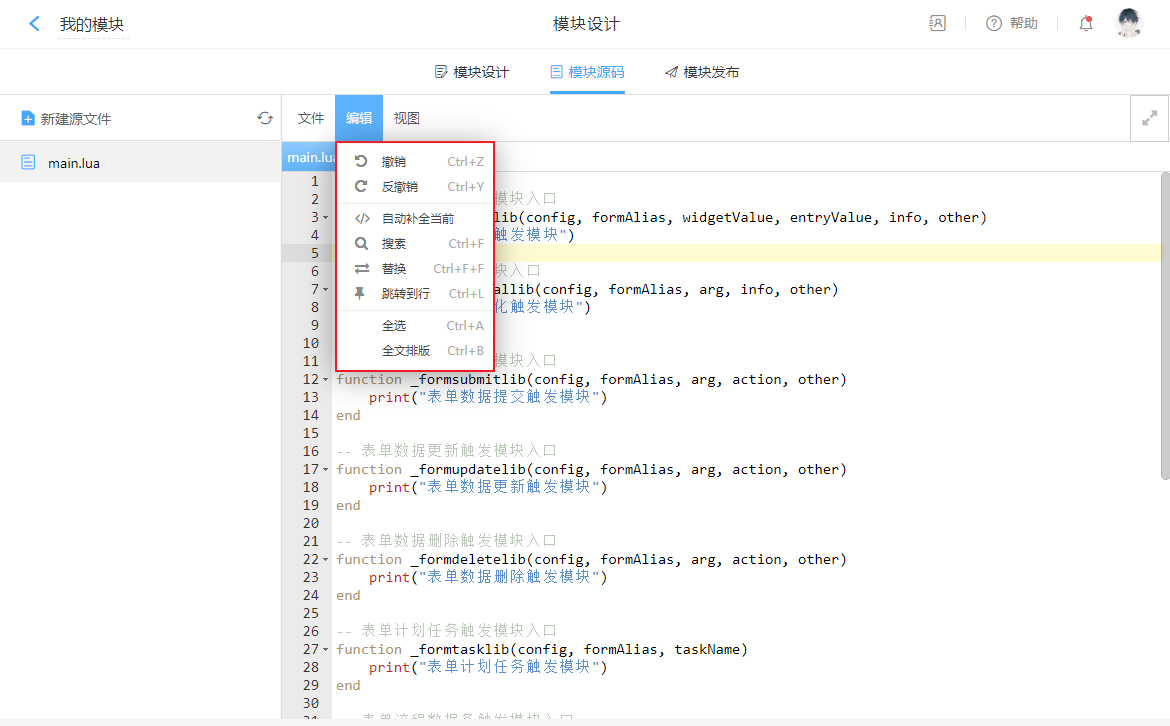 源文件.pypython源码文件而开发的,用户在编辑功能插件的代码.py文件时,官方提供了语法关键字亮色、输入的智能提示、代码自动补全、代码排版等等功能。因此在调试功能插件代码时,推荐大家使用在线编辑器。