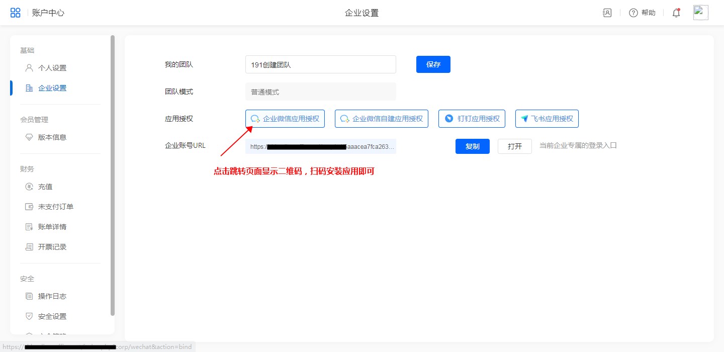 由于企业微信方修改收费模式,导致原企业微信绑定模式使用受限,故此平台提供企业微信激活方式,完成激活流程后可继续使用企业微信,详情参考企业微信激活。