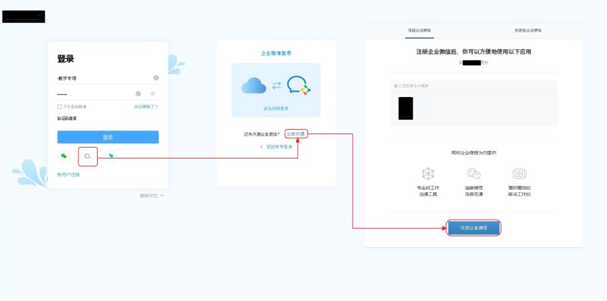 2.在系统登录页进入企业微信注册页面