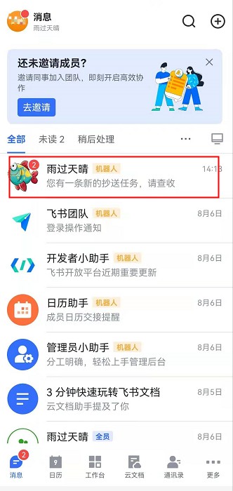 用户在飞书上收到消息后,可以根据用户权限进行相应的增删改查操作。