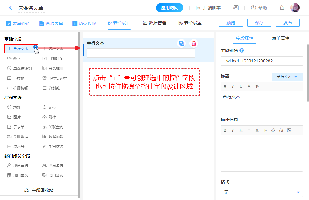“字段别名”用于后端开发,默认为系统自动生成的随机字符串,可修改。