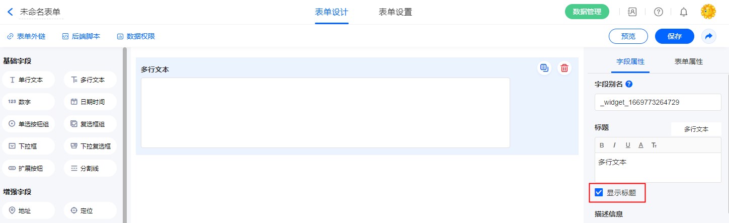 - 如果“多行文本”属于子表单内的控件,则无法设置此属性。