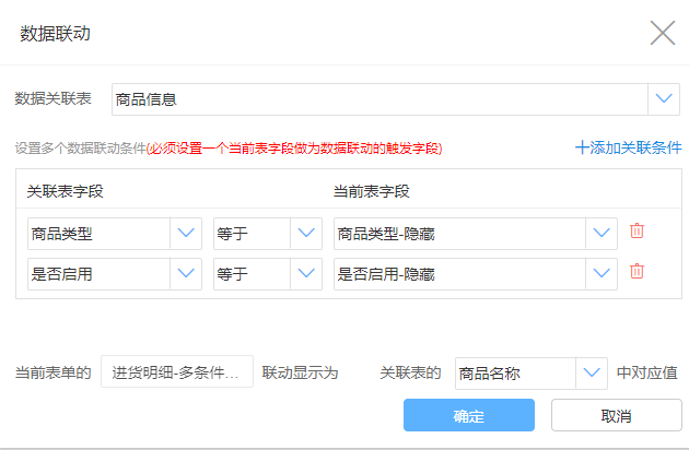 之前我们在使用数据联动时,只能用一个条件进行关联,从而使某个字段的内容跟着上一个字段的变化而自动填写或自动改变选项,现在数据联动可以支持多条件,我们可以使用多个条件进行关联!