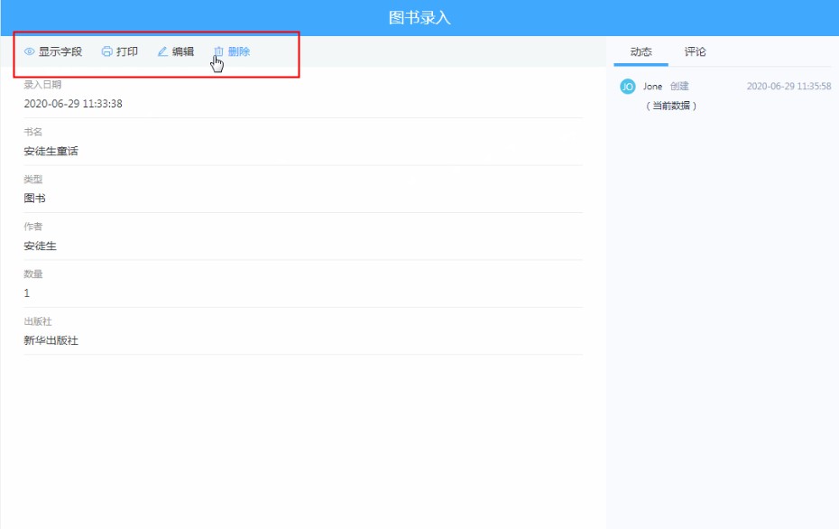 数据收集后,在表单数据管理处打印出单条数据的二维码,在相关人员需要查看数据信息时扫码二维码即可查看。例如工厂设备信息介绍、服装信息介绍等。