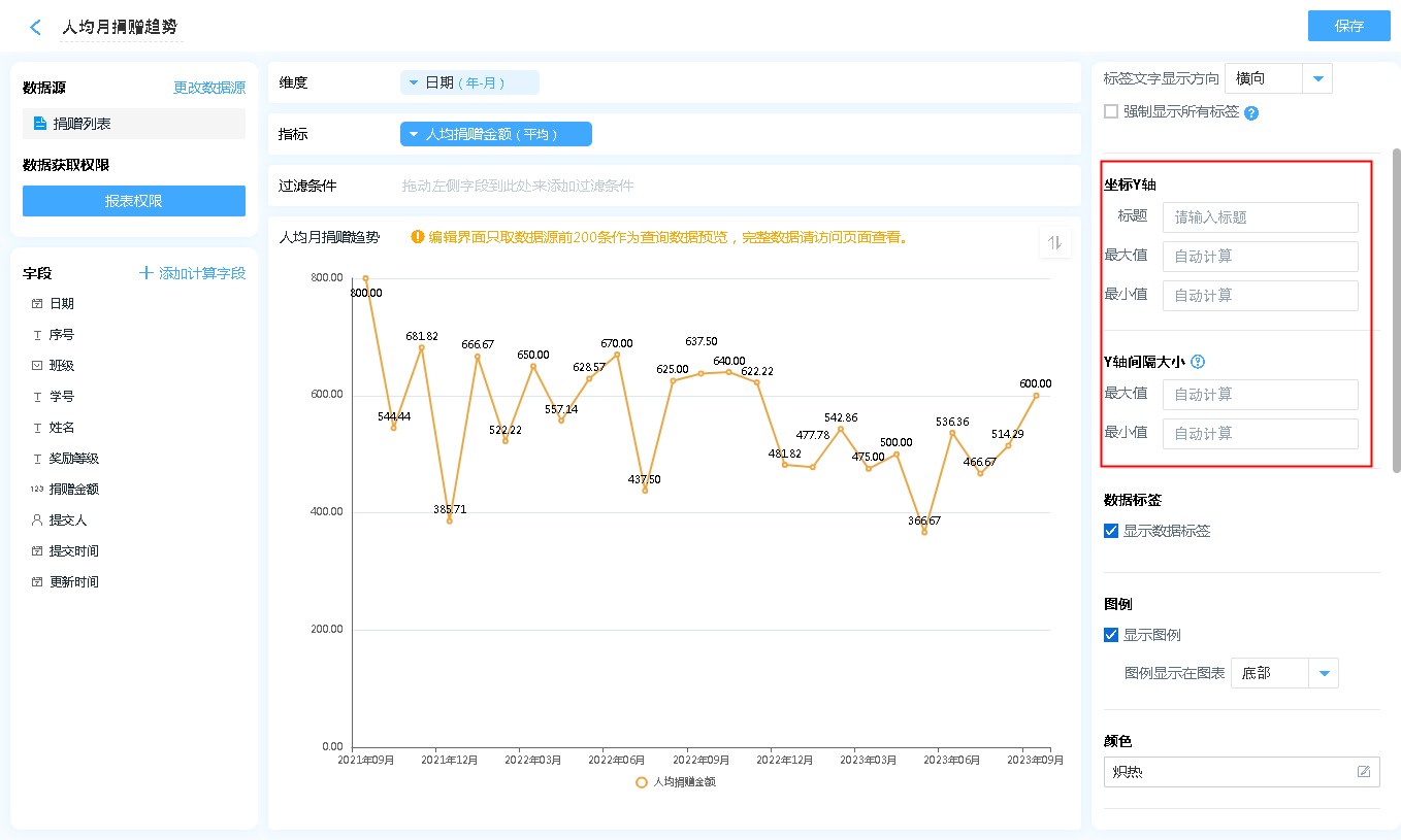 数据源就是指当前折线图表的数据来源,可以是表单、数据视图。