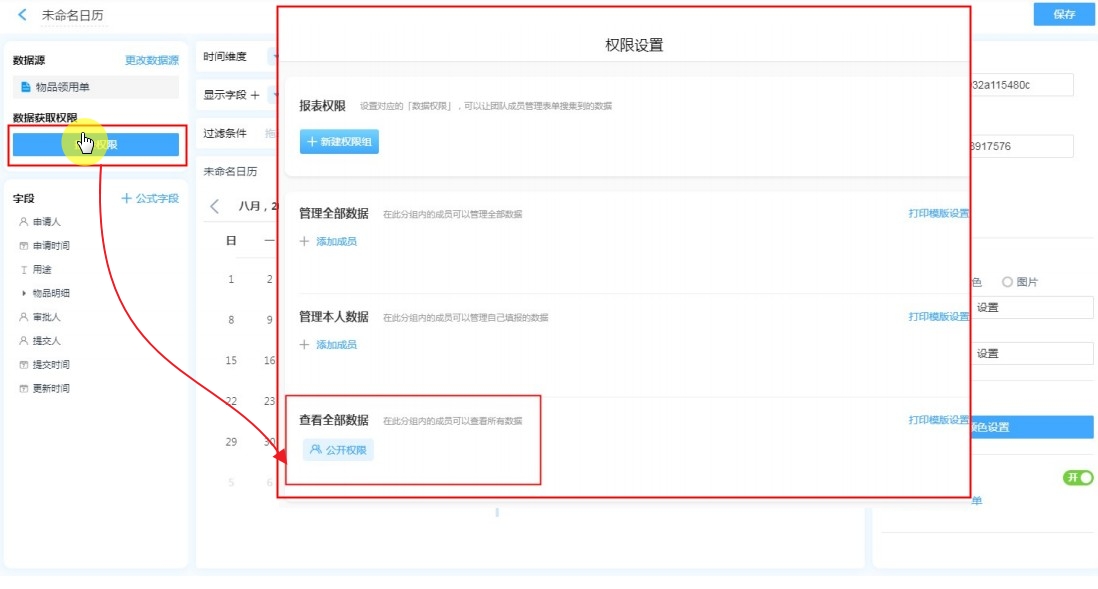 如果我们需要用户打开外链即可查看数据,那我们需要在报表【操作权限】里的【查看全部数据】设置为公开权限。